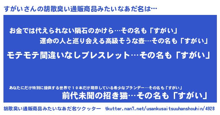 | ヒーロー風カッコイイあだ名 | 『スーパースガイ』『天空の使者すがい』 |