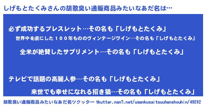 | ヘコむあだ名 | 『しげ太郎』『しげふぇ~』 |