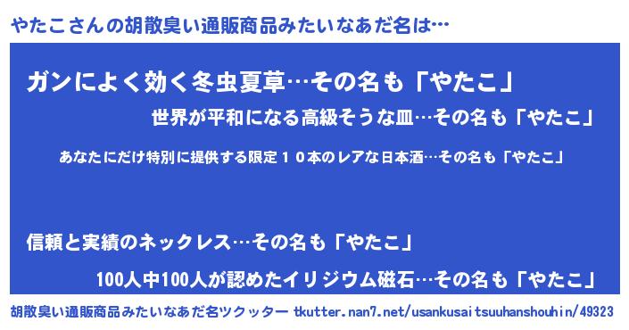 | 男性向けラノベタイトル風あだ名 | 『この素晴らしい世界にやたこを!』 |