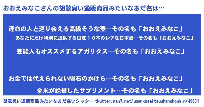 | 男性向けラノベタイトル風あだ名 | 『おおえみなこに滅ぼされるだけの簡単なお仕事です』 |