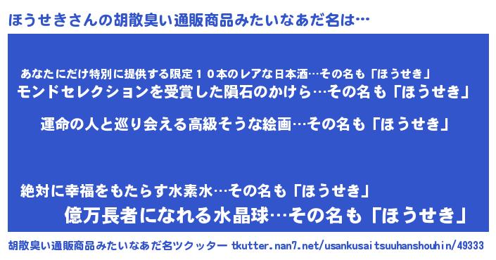 | ファンタジー風あだ名 | 『エターナルホウセキー』『ホウフェル』 |