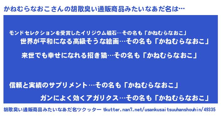 | ヘコむあだ名 | 『かねむらなおこ(小並感)』『酢こんぶ』 |
