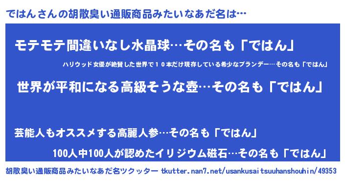 ではんさんの胡散臭い通販商品みたいなあだ名をツクッター!