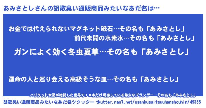 | 意味不明あだ名 | 『自称あみさとし』『永久保存あみさとし』 |