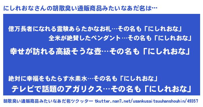 | 意味不明あだ名 | 『にしれおなフォーエバー』 |