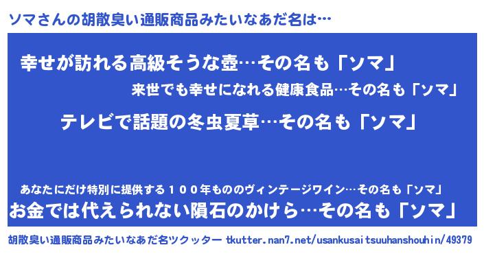| 今でしょ! | 誰がやるか?『ソマ君でしょ!』 |