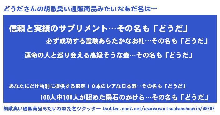 | ヒーロー風カッコイイあだ名 | 『ウルトラどうだマン』『暗黒騎士ドウ』 |