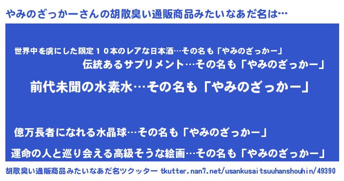 | ヘコむあだ名 | 『やみのざっかー(震え声)』『なまこ酢』 |