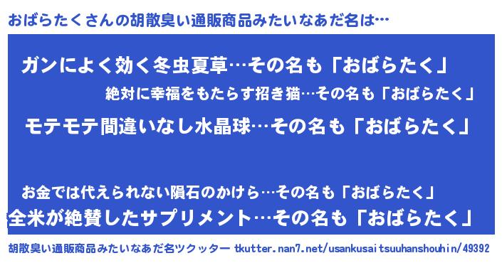 | 意味不明あだ名 | 『ペロリンおばらたく』『自称おばらたく』 |