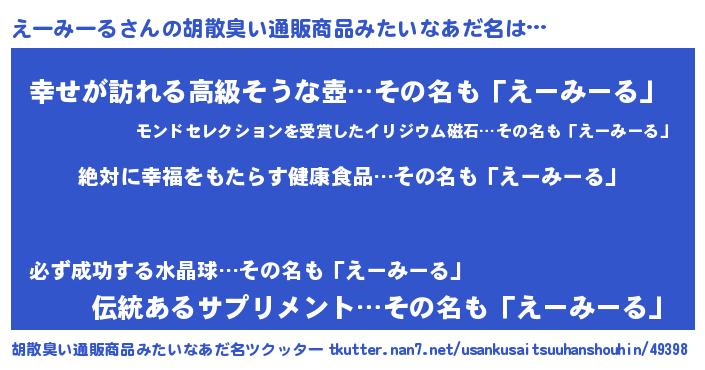 | ヘコむあだ名 | 『えーみーる(爆)』『つくし』 |