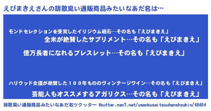 | 欧米人風あだ名 | 『えびまきえ・ステッグマイヤー』 |