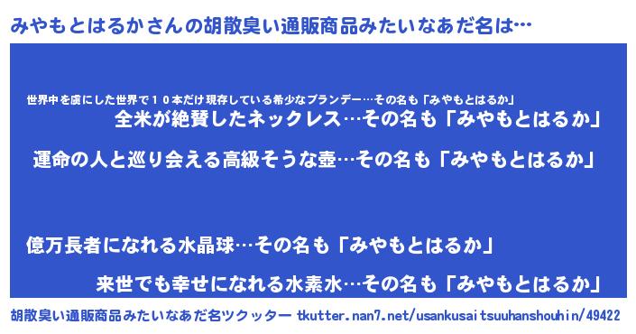 | 肩書あだ名 | 『みやもとはるか大統領』 |