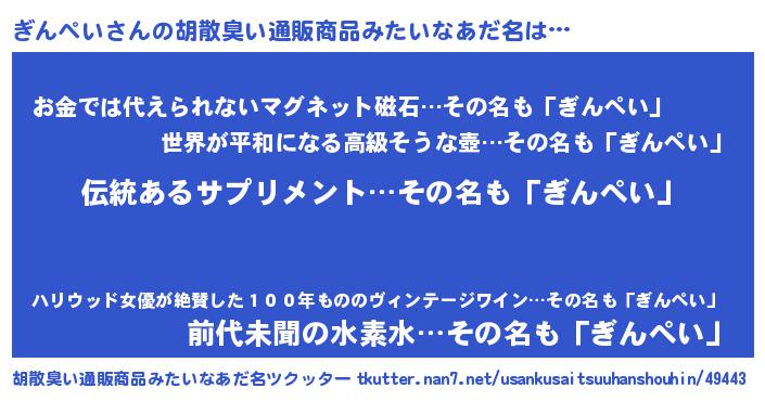 | 意味不明あだ名 | 『とにかく怪しいぎんぺい』 |