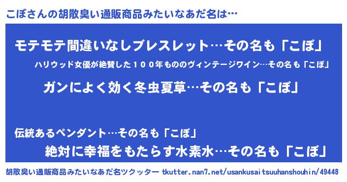 | 意味不明あだ名 | 『自称こぼ』『ペロリンこぼ』 |