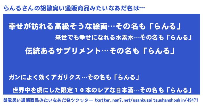 | ヘコむあだ名 | 『らんを』『つくし』『らんる(笑)』 |