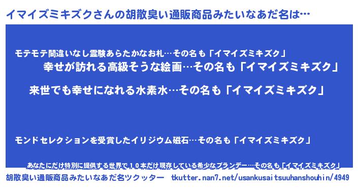 | 意味不明あだ名 | 『永久保存イマイズミキズク』 |