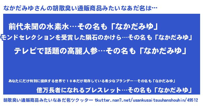 | 意味不明あだ名 | 『自称なかだみゆ』『永久保存なかだみゆ』 |