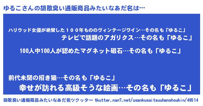 | 意味不明あだ名 | 『眠気覚ましガムゆるこ味』『自称ゆるこ』 |