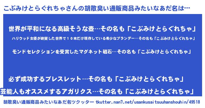 | ヘコむあだ名 | 『酢こんぶ』『こぶにゅー』 |