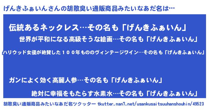 | ヘコむあだ名 | 『げんを』『げんきふぁいん(遠い目)』 |