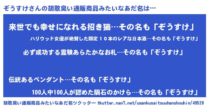 | ヘコむあだ名 | 『ぞうもー』『ぞうすけ(小並感)』 |