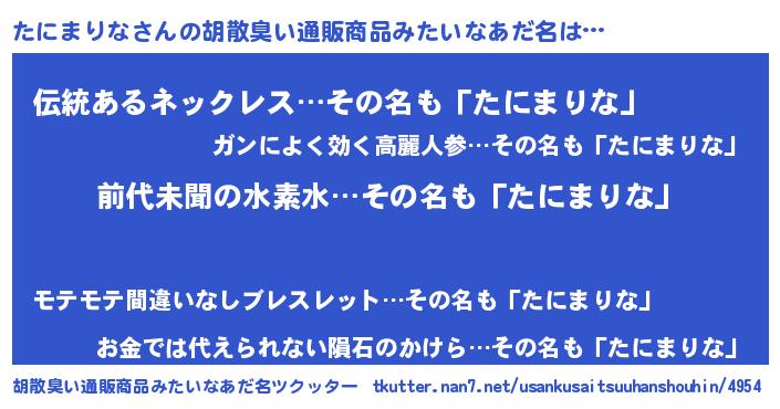 | 意味不明あだ名 | 『永久保存たにまりな』『自称たにまりな』 |