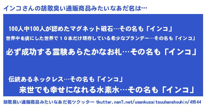 | ヘコむあだ名 | 『インっふぃ~』『インコ(小並感)』 |
