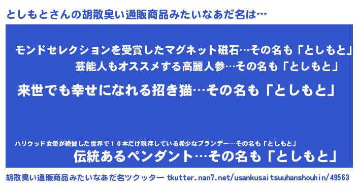| ヘコむあだ名 | 『としもと(笑)』『としを』『牛乳』 |