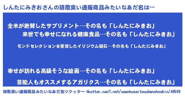 | 意味不明あだ名 | 『眠気覚ましガムしんたにみきお味』 |