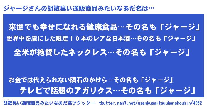 | ヘコむあだ名 | 『ジャっぺ』『ジャージ(笑)』 |