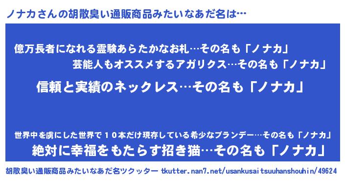 | 男性向けラノベタイトル風あだ名 | 『ノナカスレイヤー』『緋弾のノナカ』 |