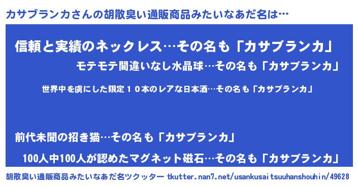 | 意味不明あだ名 | 『住所不定無職カサブランカ(62歳)』 |