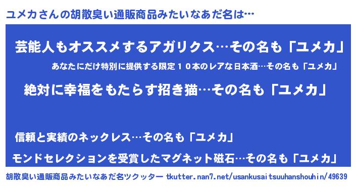 | 欧米人風あだ名 | 『アンジェラ・ユメカ』『ダニエルユメカ』 |