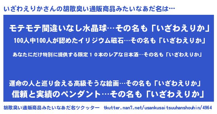 | 伝説のあだ名 | 『封印されし傭兵いざわえりか』 |