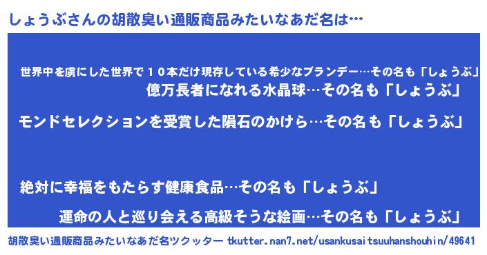| ヒーロー風カッコイイあだ名 | 『天空の使者しょうぶ』『仮面ショダー』 |