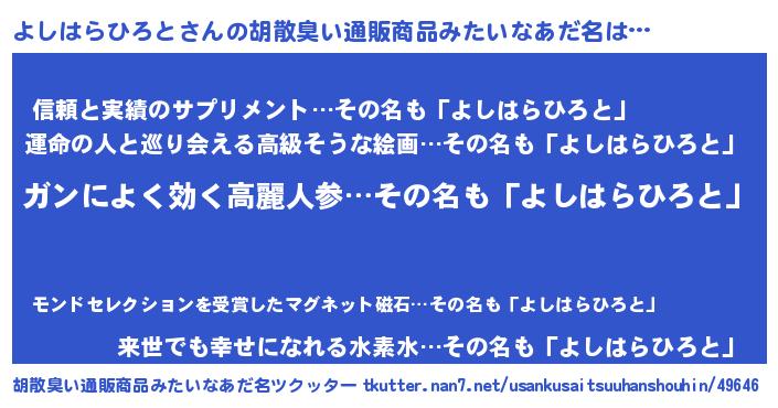 | ヘコむあだ名 | 『よしお』『よしはらひろと(笑)』 |