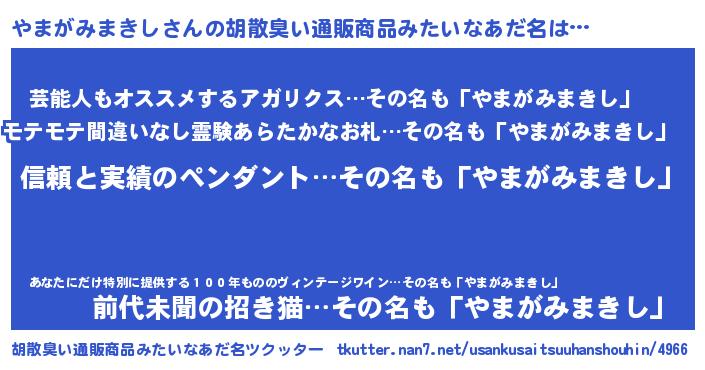 | ヘコむあだ名 | 『やまっちょ』『やまがみまきし(爆)』 |