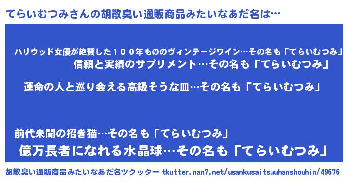 | 肩書あだ名 | 『てらいむつみ国家主席』 |