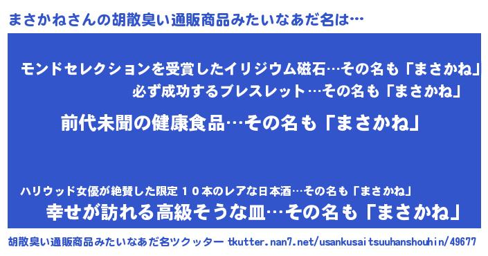 | ヒーロー風カッコイイあだ名 | 『ネオマサカネ』『正義の使者まさかね』 |