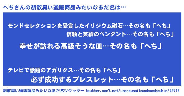 | ヒーロー風カッコイイあだ名 | 『ウルトラへちマン』『天空の使者へち』 |