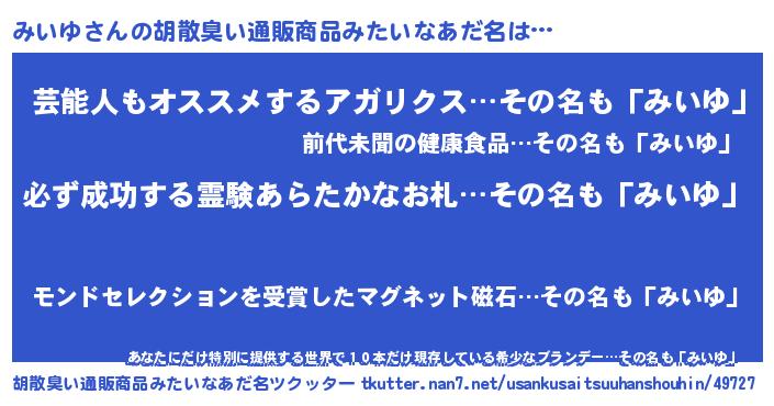 | ヘコむあだ名 | 『みいっふぃ~』『みいゆ(爆)』 |