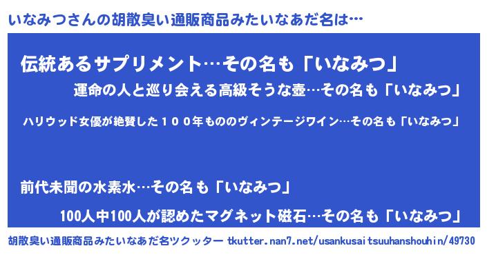 | 男性向けラノベタイトル風あだ名 | 『イナミツスレイヤー』『緋弾のイナミツ』 |