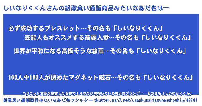 しいなりくくんさんの胡散臭い通販商品みたいなあだ名をツクッター!