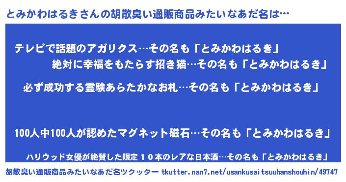 | 恥ずかしいあだ名 | 『プリティーとみかわはるき』『とみちん』 |