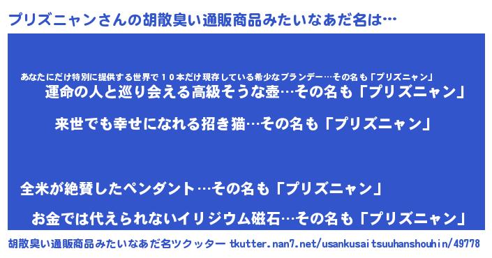 | 意味不明あだ名 | 『永久保存プリズニャン』 |