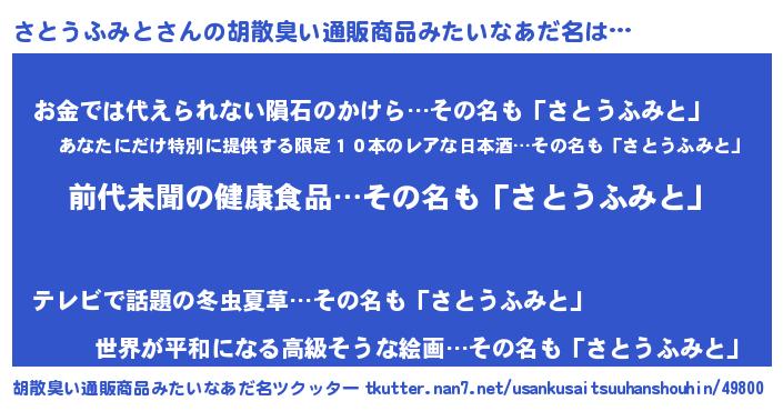 | 伝説のあだ名 | 『古文書に記された暗殺者さとうふみと』 |