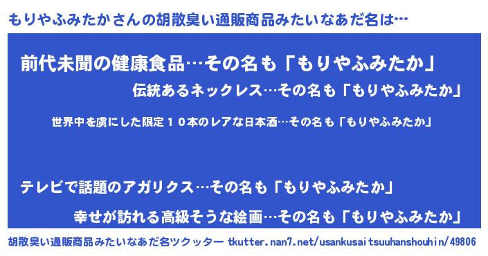 | 意味不明あだ名 | 『住所不定無職もりやふみたか(65歳)』 |