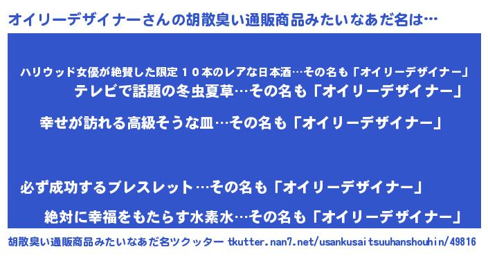 | 意味不明あだ名 | 『オイリーデザイナーフォーエバー』 |
