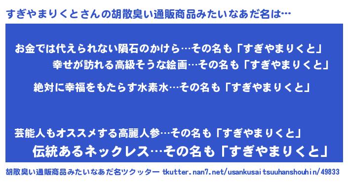 | 意味不明あだ名 | 『永久保存すぎやまりくと』 |