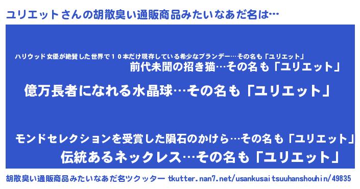 | 男性向けラノベタイトル風あだ名 | 『ユリエットアートオンライン』 |